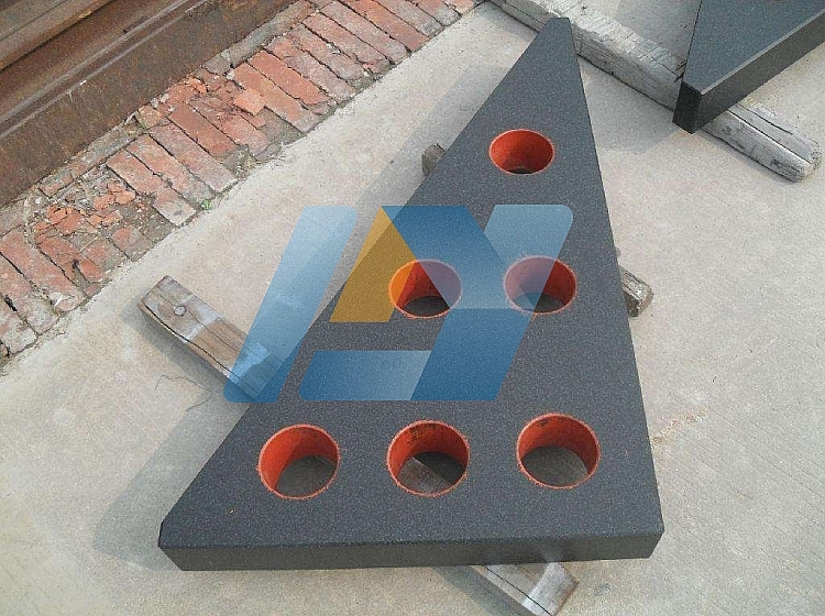 花崗巖(大理石)直角尺適合于垂直度的檢測。平面精度標準GB6092-85,垂直度標準GB6092-85。為減少重量及方便加工而增加了減重孔。側(cè)面的公差是0.02。