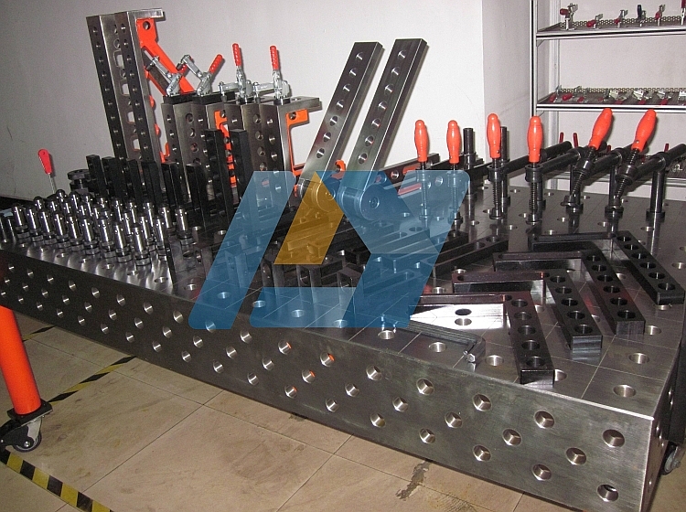 三維柔性工裝平臺是根據(jù)機械加工中焊接夾具的原理構(gòu)思而成,通過平臺基礎(chǔ)班與槽型孔附件,附件與附件相互搭配連接,能夠形成一套焊接組合工裝。